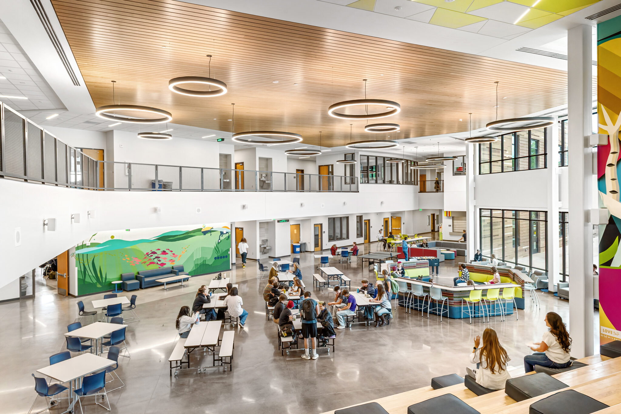 New Vista High School is a building that supports curiosity, connection, and comfort. Purposefully designed for a school that thinks differently, it reflects the vision of a community that values both innovation in education and responsibility to the environment.